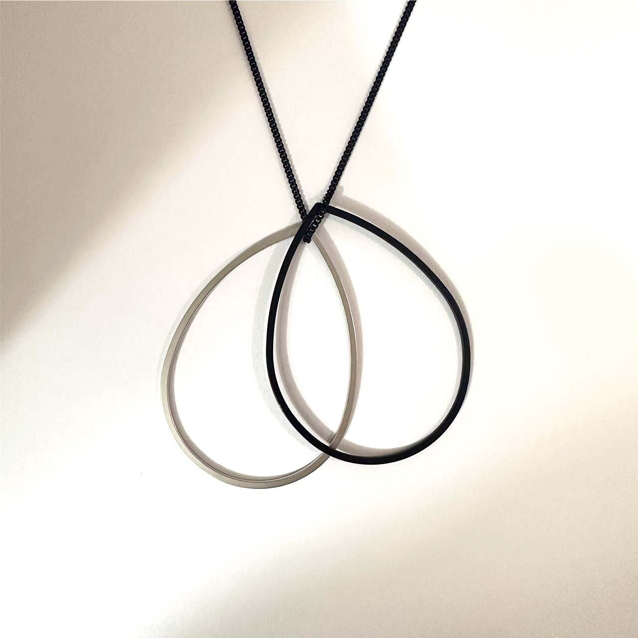 ラージティアドロップネックレスは、シンプルで洗練されたデザインが魅力です。美しいティアドロップ型のモチーフが、どんなシーンでも存在感を放ち、シーズンレスでお楽しみいただけます。ブラックとブロンズのツートンカラーが、柔らかさとエッジの効いた印象を演出します!