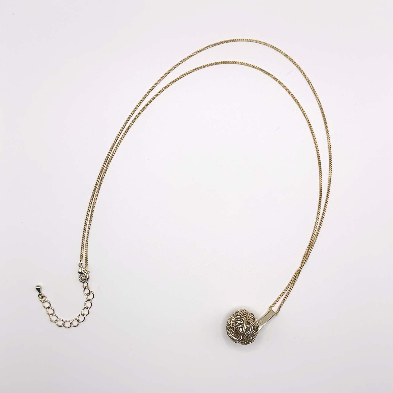 ワイヤーボールネックレスは、繊細なデザインが特徴のアイテムです。ワイヤーが絡まりあったような独特なモチーフは、さりげなくも存在感を放ちます。軽やかな印象で、普段使いや重ね付けにもぴったりなネックレスです!