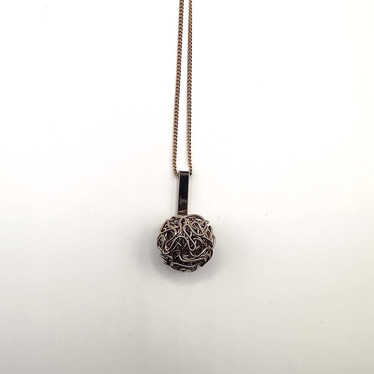 ワイヤーボールネックレスは、繊細なデザインが特徴のアイテムです。ワイヤーが絡まりあったような独特なモチーフは、さりげなくも存在感を放ちます。軽やかな印象で、普段使いや重ね付けにもぴったりなネックレスです!
