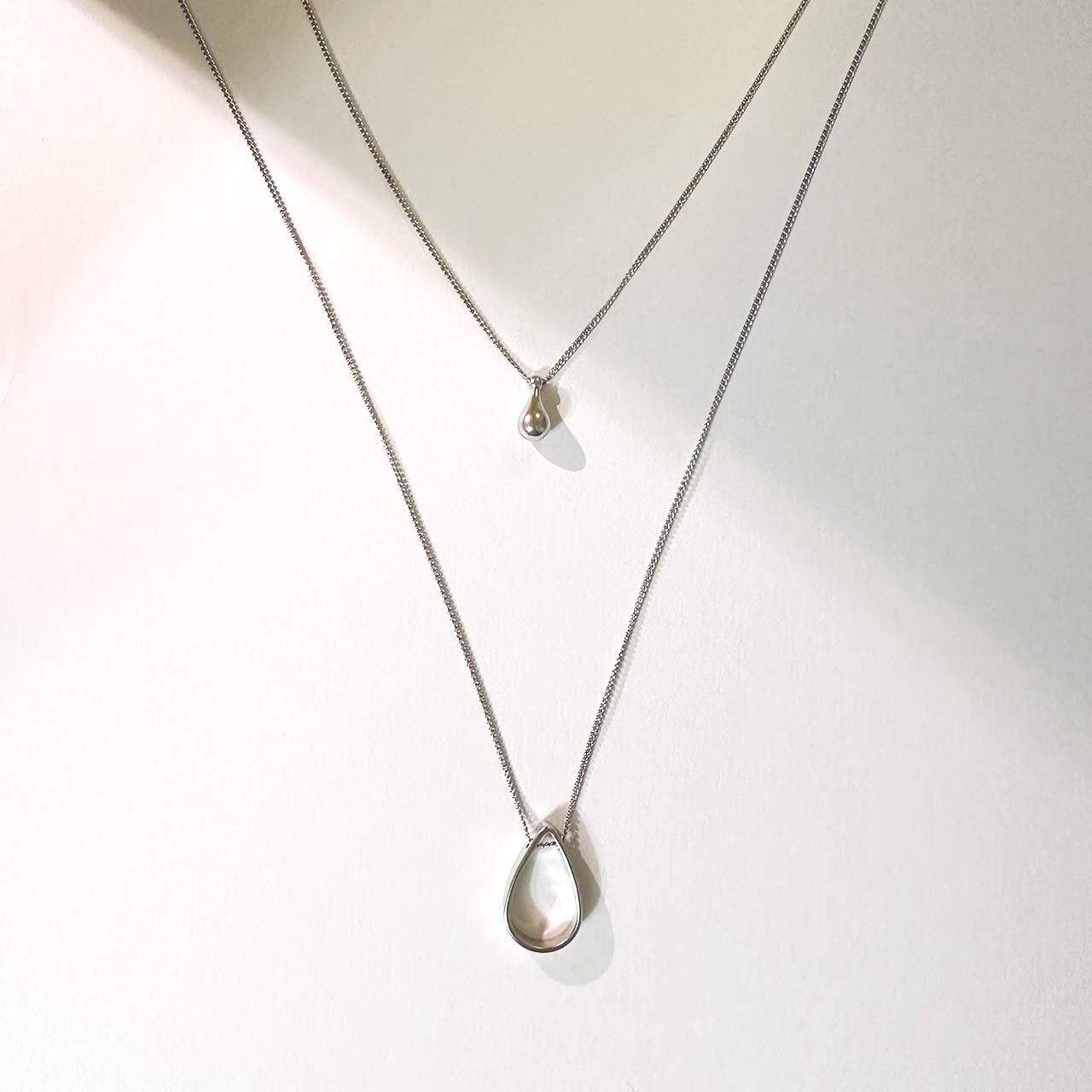 ティアドロップネックレス / シルバーは、エレガントなデザインが魅力のアイテムです。デザインの異なるティアドロップモチーフが付いた2連のネックレスは、華奢でさり気ない印象を与え、日常使いや特別なシーンにもぴったり!