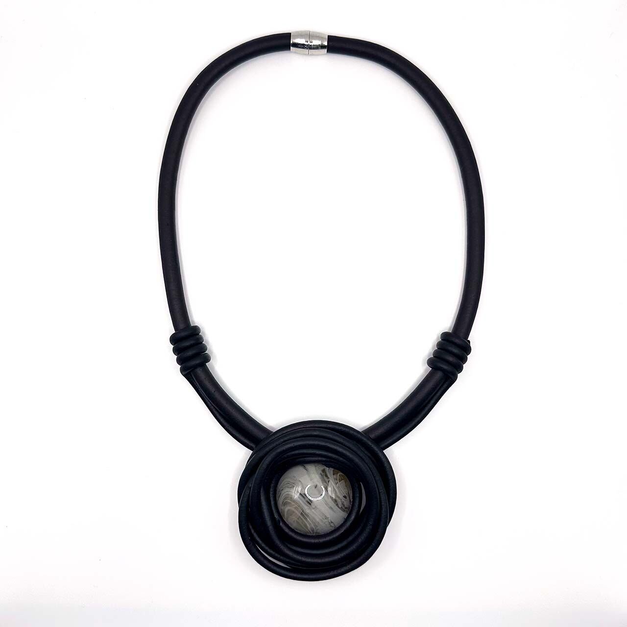 チェストピースネックレスは、短めのコードが特徴で、まるでチョーカーのようにフィット感があります。モードテイストが感じられる洗練されたデザインは、さまざまなコーディネートにおしゃれなアクセントをプラスします!また、マグネットクリップを使用しているため、着脱がとても楽々です。トップのニュアンスカラーによるグラデーションが、他にはない特別な雰囲気を演出しています。