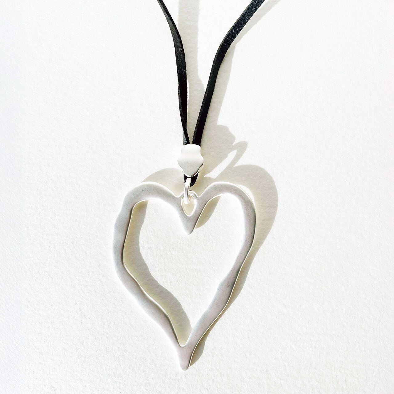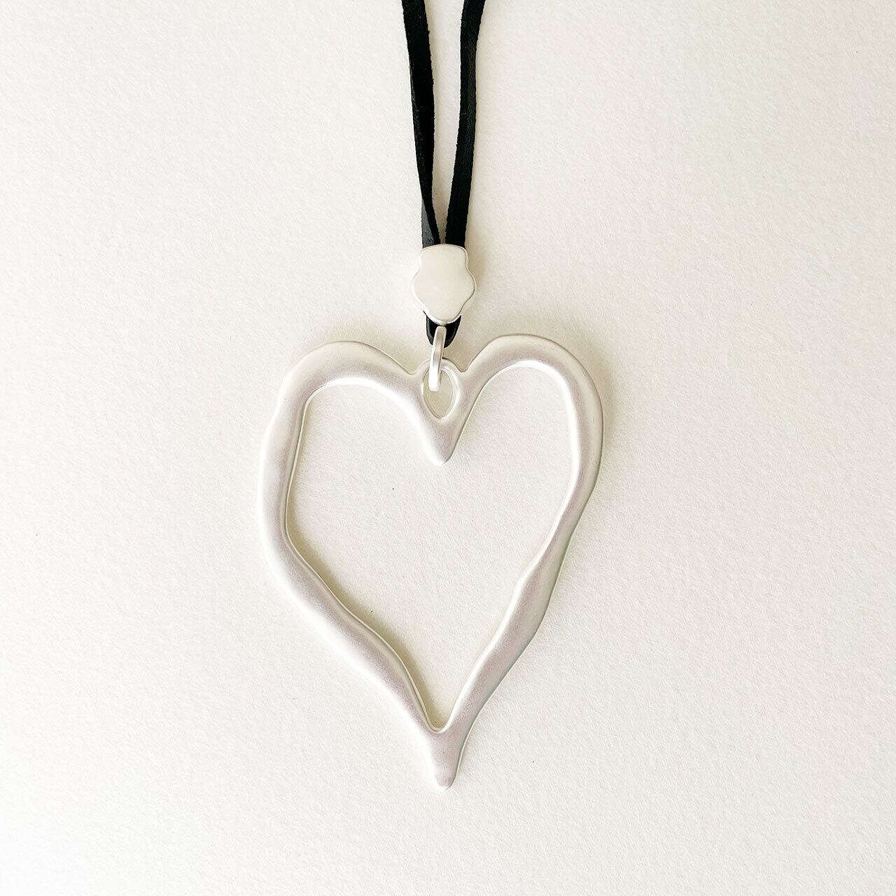 アートフルハートネックレスは、目を引く大ぶりなハート型のモチーフが特徴的なネックレスです。アートのような独特の形状は、シンプルなコーディネートに華やかさをプラスし、見る人の興味を惹きつけます。軽やかなフレームのデザインなので、重たくなりすぎず、デイリーユースから特別な日のスタイルまで、さまざまなシーンにぴったりマッチします。