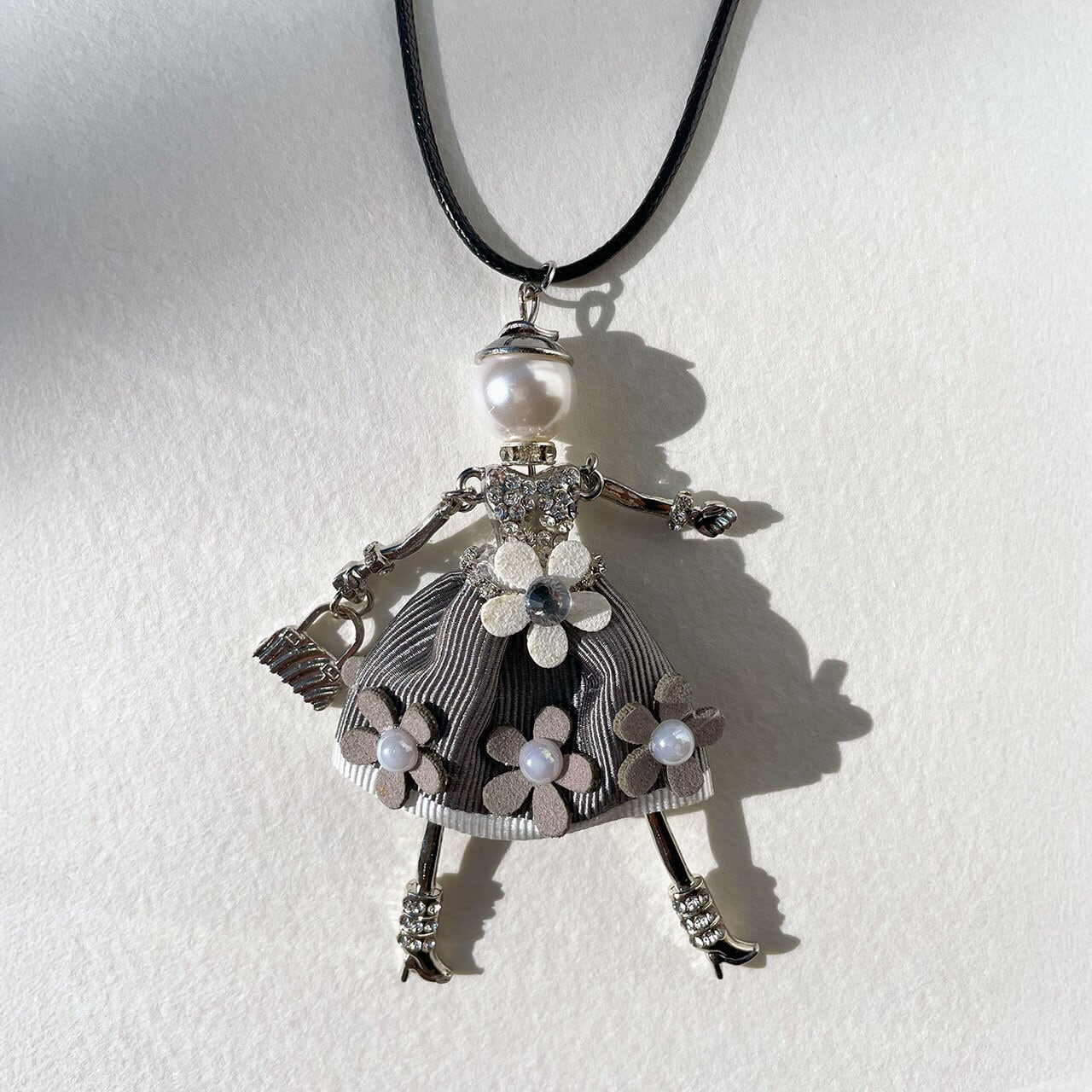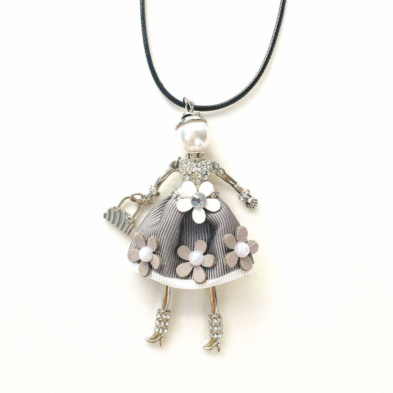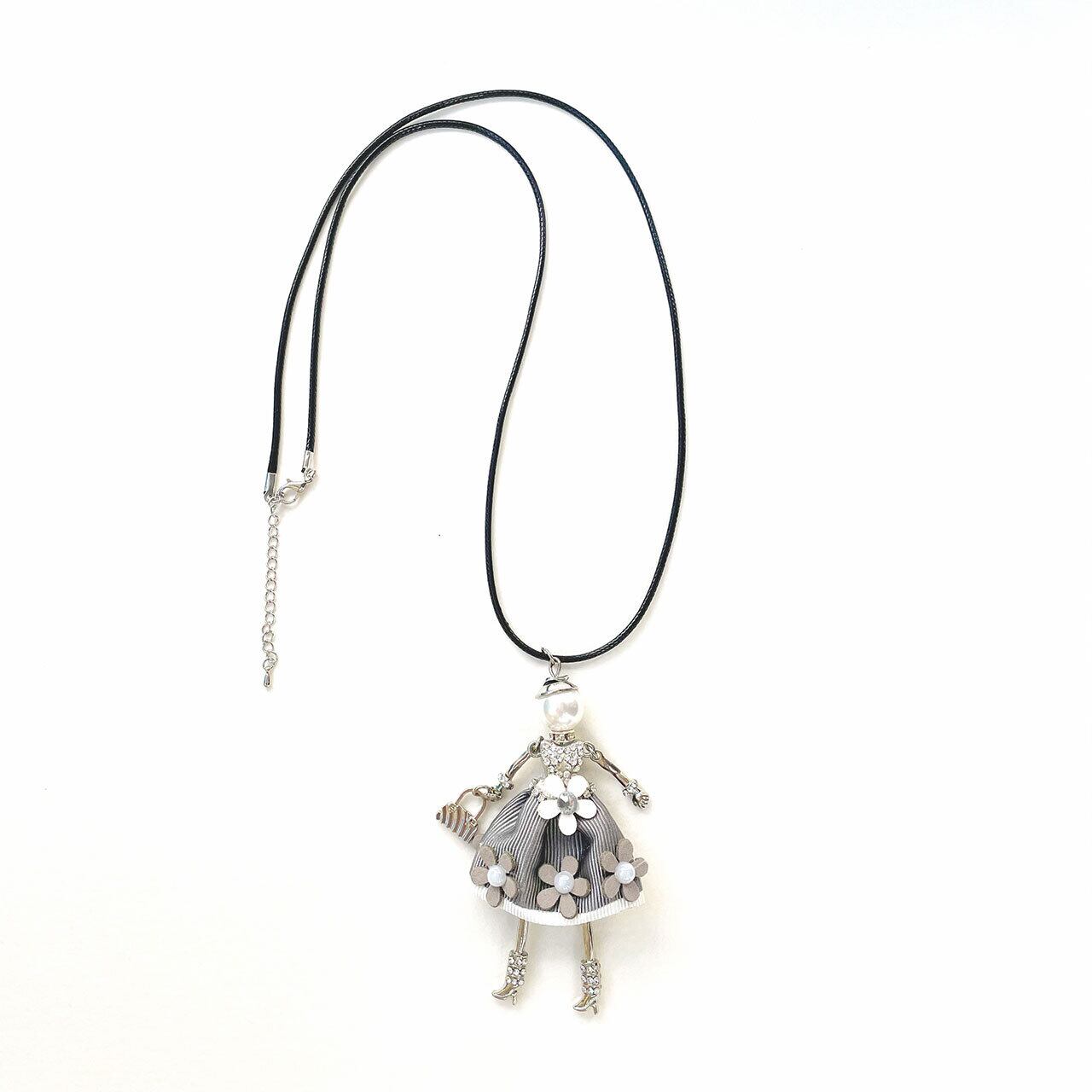 お花とラインストーンで華やかにドレスアップした愛らしいドールモチーフのネックレスです。ゆらゆらと動く手足がキュートさを引き立て、コーディネートに華を添えてくれます。大切な日のおしゃれにも、いつものスタイルを引き立てたい時にもおすすめです。