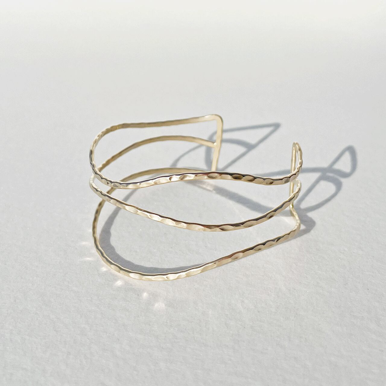 ラインウェーブバングルは、シンプルで取り入れやすいデザインが魅力です。華奢で曲線的なフォルムが女性らしさを引き立て、どんなコーディネートにも自然に溶け込みます。オープンデザインのため、付け外しが簡単で、日常使いにもぴったりです!